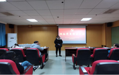 本网讯(通讯员 符梦娟)2020年12月17日19:00,我院在60605教室顺利举行本科生支部关于预备党员转正的党员大会。参与本次会议的有院党委书记戴军、院党委副书记吴利华、副院长欧祖军、本科生党支部书记丁玉兰以及预备党员的入党介绍人和本科生全体党员。本次会议由学生党支部副书记李佳乐主持,大会在庄严肃穆的国际歌声中拉开帷幕。