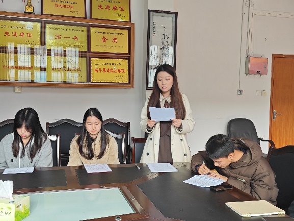 (通讯员 杨诗韵)为深入学习贯彻党的二十届四中全会精神,严格规范党员发展与转正程序,加强基层党组织建设,12月5日中午12:30,太阳成集团tyc151cc研究生党支部在院会议室(线上同步开通腾讯会议)隆重召开支部大会暨十二月份党日活动。本次会议由党支部书记符梦娟主持,院党委书记吴湘军到会指导。会议应到正式党员28人,实到26人,符合规定人数要求,会议如期举行。