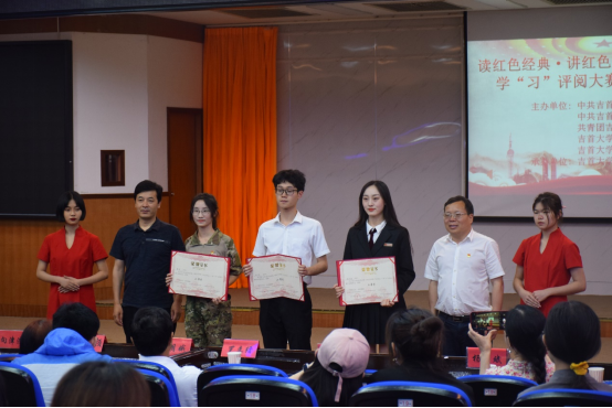 我院的龙莎同学和蔡瑾同学以《红岩》作为评阅书目,讲述了江雪琴在狱中所进行的英勇战斗,虽然最后惨遭屠杀,但却充分显示了共产党人视死如归的大无畏英雄气概。同时也联系当下习近平主席提出的守好红色初心,对大学生进行了号召。她们用红色经典故事,抒发了对党和国家的无限热爱、对革命英烈的敬仰怀念,她们诚挚的情感、精彩的诵读感染着在场的所有人,引起了一阵阵热烈掌声。蔡瑾同学和龙莎同学的精彩演讲在此次评阅大赛中分别取得了二等奖、三等奖的好成绩。