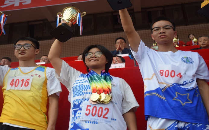 2023年10月29日下午,吉首校区与张家界校区各学院代表队齐聚砂子坳校区田径场参加闭幕式,我院师生脸上皆洋溢着喜悦的笑容。“未来锦途坦荡,少年沐风自明朗”,颁奖仪式上,我院王棋萝、龙秋霞、刘景鹏三位运动员身戴奖牌代表学院上台领奖,他们是炽热明媚的太阳,散发着属于胜利的阳光,尽显数统风采,高举奖杯的那一刻是属于太阳成集团tyc151cc的辉煌!