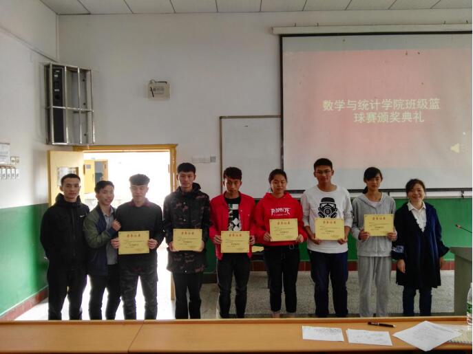 首先,彭立平祝贺班级篮球赛顺利落下帷幕,并预祝我院新生杯顺利开展。期间,彭立平还多次表扬了我院的优良风气,尤其不同于其他学院的是,我院每场班级篮球赛,学院领导、各班班主任都会准时到场为学生加油,给与鼓励。接着,吴利华对球场上英姿飒爽的球员表示赞赏,并希望他们能继续将体育精神传遍整个数统院,更对在幕后默默奉献、勤劳辛苦的工作人员予以肯定,并期望我院会涌现出更多有能力、吃苦耐劳的同学。随后,吴丽华宣布获奖名单,吴丽华、彭立平、彭小凡为获奖同学颁奖。