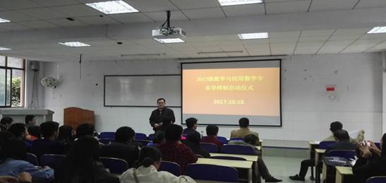 9月18日下午2:30,太阳成集团tyc151cc在60115教室举行2017级数学与应用数学专业导师制启动仪式,院党委书记戴军,副院长莫宏敏、欧祖军,院长助理陈望学,数学系主任钟文勇,以及贺乐平、吴国军,姚元金、杨奋林、戴厚平、曹灿、邱德勤、何健等老师参加了本次会议,会议由副院长莫宏敏主持。 大会上,莫宏敏副院长首先对2017级数学与应用数学专业试行导师制的目的、试行范围、导师组成、学生分配、导师职责、指导要求等做了具体的说明,并且宣布从即日开始,2017级数学与应用数学专业“四年一师制”专业导师制正式启动。