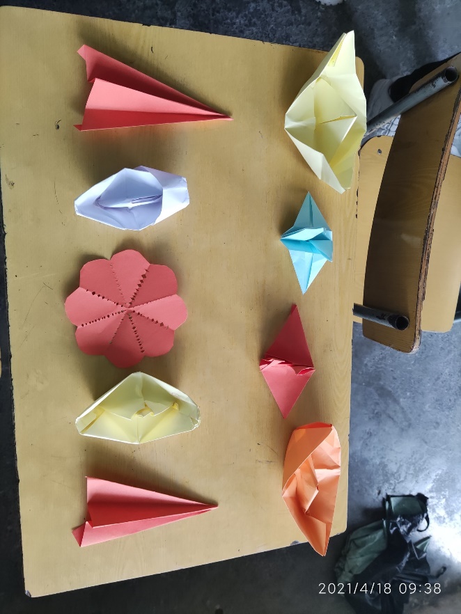 小孩子们都喜欢展现自我,这是一件好事。折纸课上,大家握着剪刀,拿着彩纸,一个个都摆正了神色,仿佛在说,老师,等着我们给你大展身手。有几个不太会的小朋友拽着小老师的衣裳,说要学这个要学那个。大家剪完一份作品便写上自己名字送到老师的面前,眨着乌溜溜的大眼睛等着老师的表扬。慢慢地,大家围在了一块,互相帮助,彼此学习,时间就在这些灵巧可爱的小手上悄然过去。
