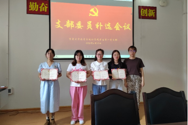 由支部书记张毓芯老师宣读支委改选决定:我党支部现有党员54名,支部委员会由张毓芯同志、伍东同志、张继元同志等3人组成。因伍东同志毕业离校。为了保证支部工作的有序开展,经支部委员会讨论研究,拟定于2022年 6月17日召开支部大会,补选党支部委员。并对支委职务进行调整。