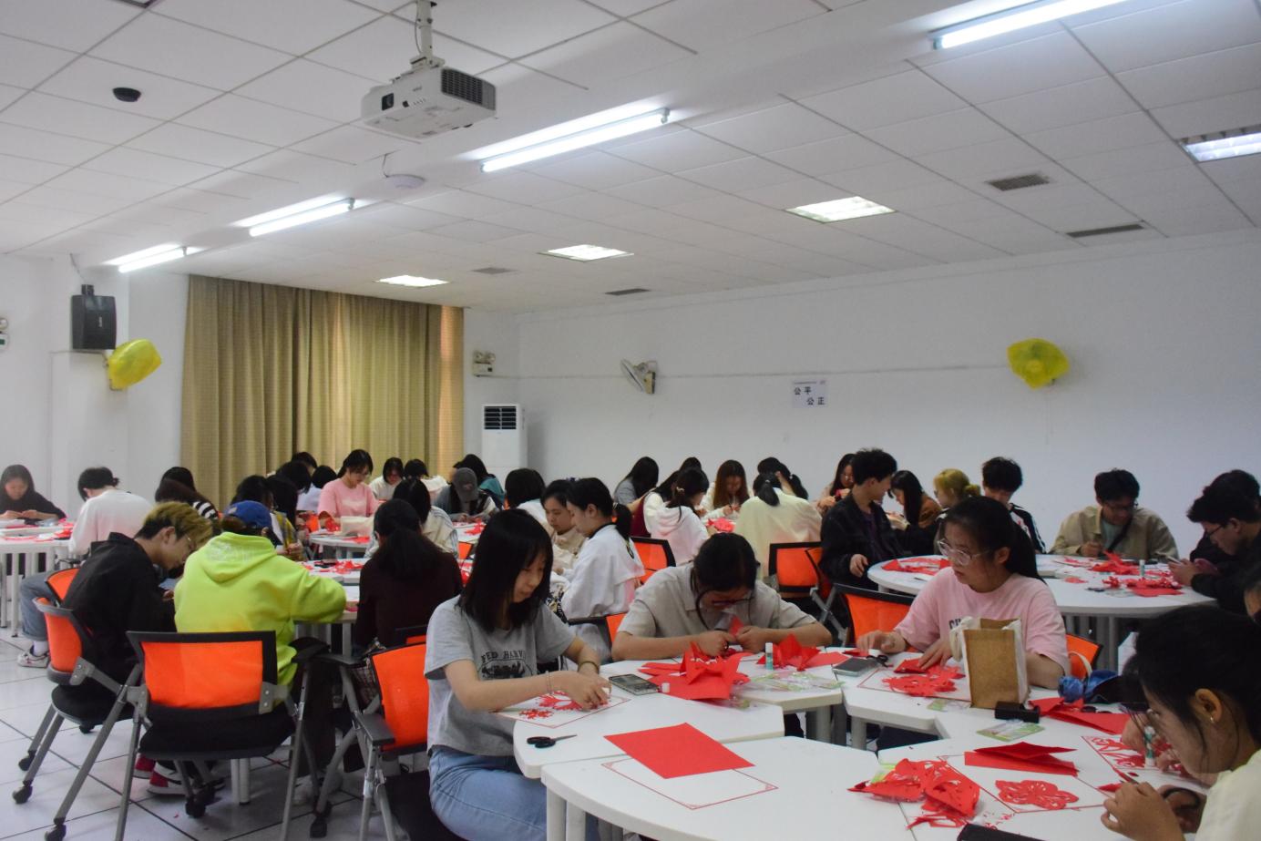4月26日下午,太阳成集团tyc151cc于砂子坳校区60522开展剪纸小课堂,邀请了吉首大学师范学院关洁老师作主讲,太阳成集团tyc151cc党委副书记吴利华、学工办老师张毓芯及感兴趣的同学参加此次课堂。