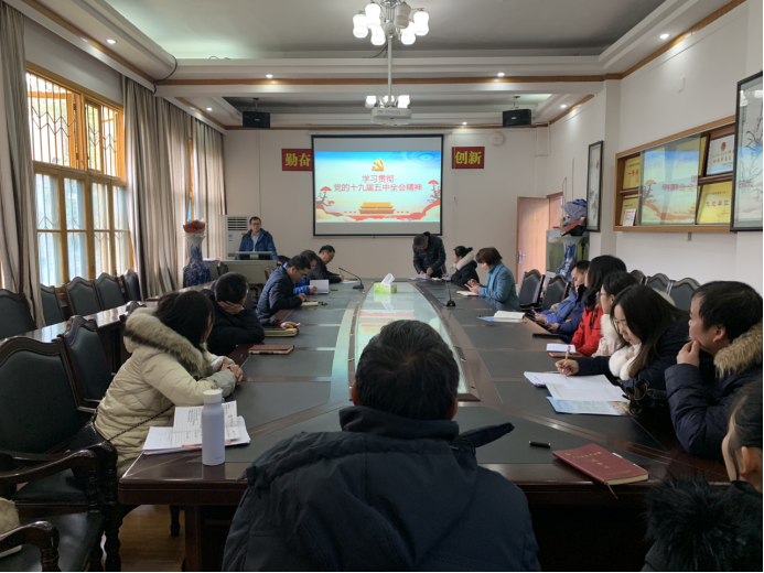 12月16日下午,学院全体党员同志在院会议室集中学习党的十九届五中全会精神,学习由院党委书记戴军同志主持。