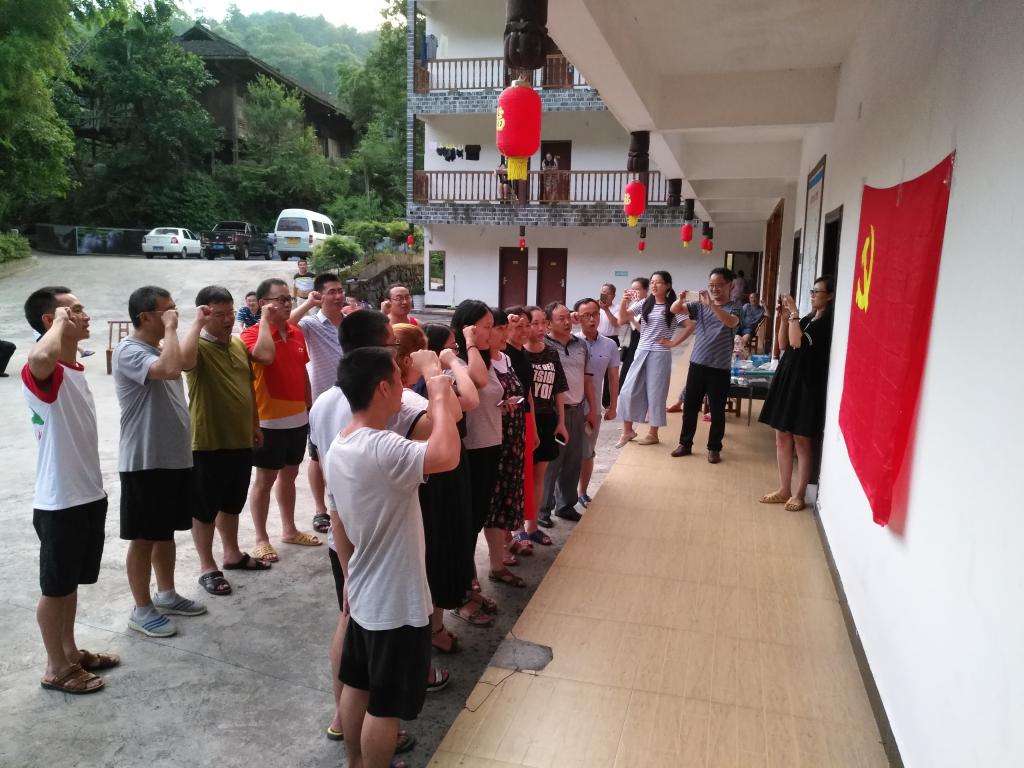2017年7月22日下午,太阳成集团tyc151cc教工支部在院党委的批准下组织学院全体党员在永顺县湘鄂川黔革命根据地旧址,开展“重温入党誓词,践行庄严承诺”主题活动。活动中,党员们面对鲜红的党旗,高举右手庄重宣誓:“我志愿加入中国共产党,拥护党的纲领,遵守党的章程……随时准备为党和人民牺牲一切,永不叛党!”,在前辈抛洒热血的土地上,在鲜红的党旗下,回响着镌刻着信仰的声音。铿锵恢宏的誓词,强烈震撼着在场的每一位党员,铮铮有力的誓言,表明了每一位党员积极接受党性熏陶,矢志不渝地坚持理想信念的人生选择。