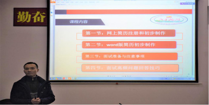 彭立平老师从“网上简历注册和初步制作”、“word版简历初步制作”、“面试准备与注意事项”、“面试高频问题答题技巧”四个方面展开培训,强调简历要按照招聘单位的标准和要求制作,个人介绍要突出自身优势。同时叮嘱大家要注意求职安全,警惕传销公司。