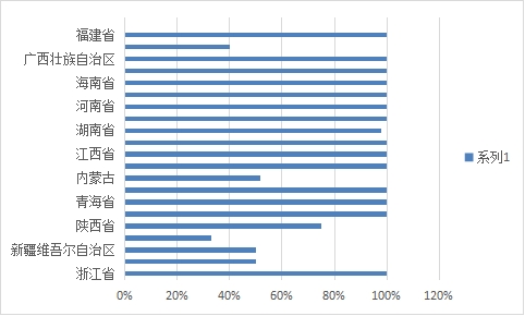 从学院毕业生回生源地的就业率情况来看,安徽、河北等地的本科毕业生回到生源地可以实现100%就业,图1.3.7中部分省份的毕业生回到生源地就业率较低,主要是由样本容量较小所造成的。