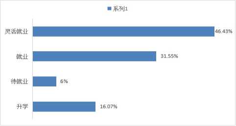 抽样调查的215名毕业生中,直接派遣就业的19人,占7.69%;灵活就业(包括企业单位)的165人,占66.80%;继续深造或出国的44人,占17.81%。